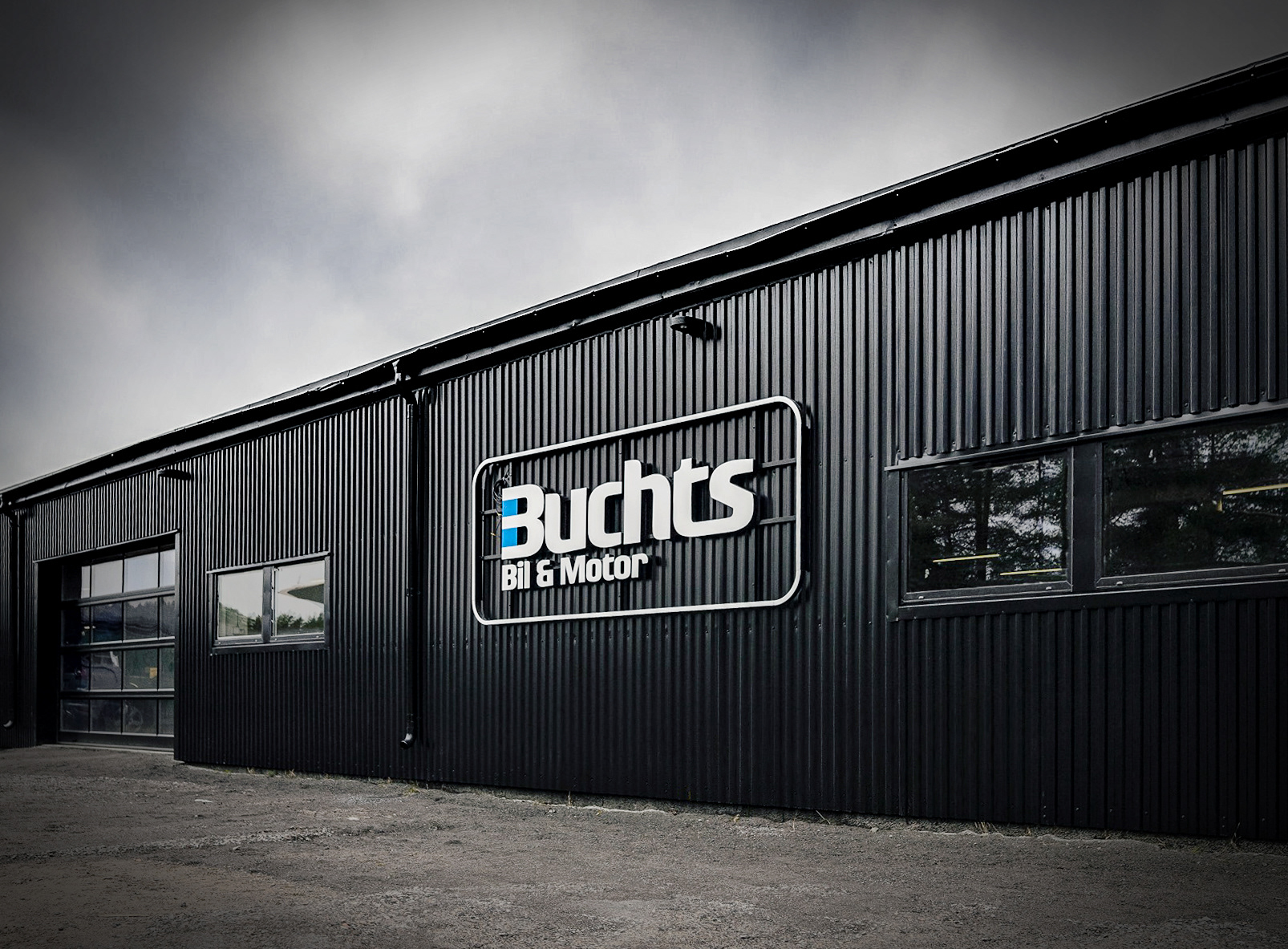 Logo design for the car sales company and automotive repair shop Buchts Bil & Motor. The owner wanted the logo to help make the business feel simple, safe and modern for the customers, and to help the business stand out from the local competition.