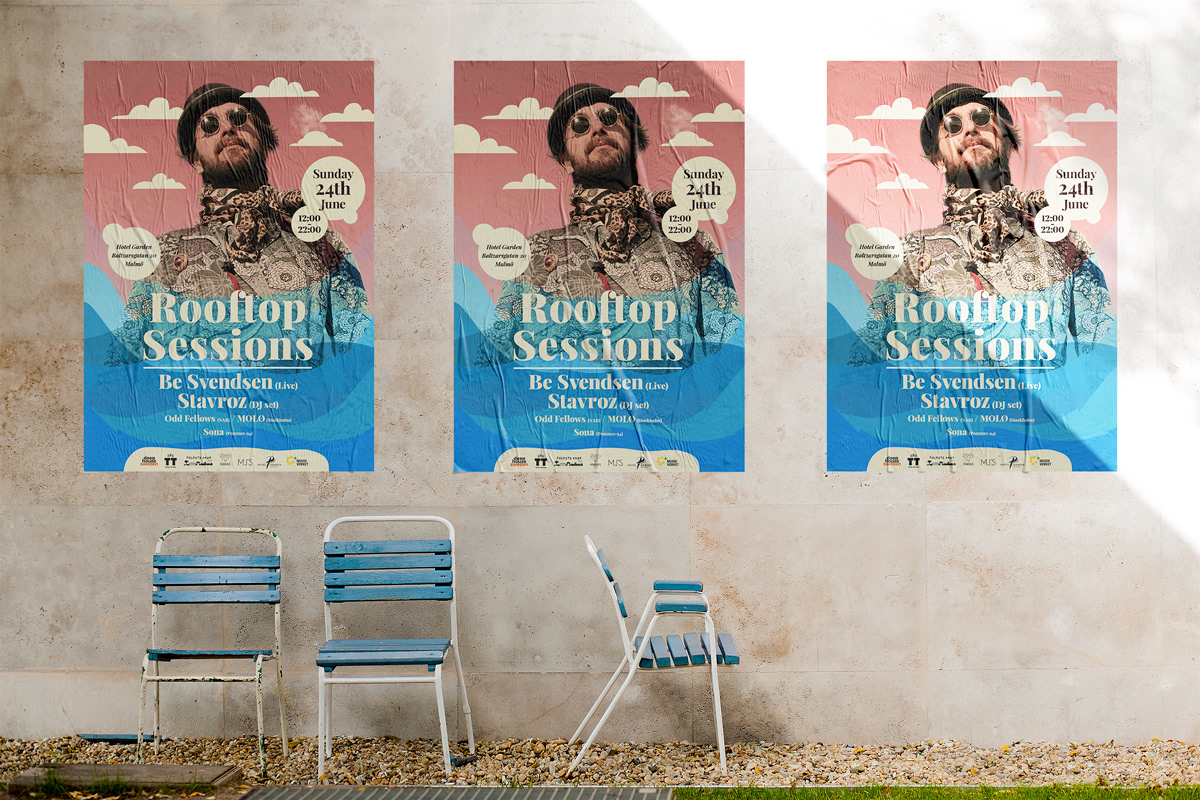 Poster for Rooftop Sessions, a summer rooftop party on top of a hotel in Malmö, Sweden.